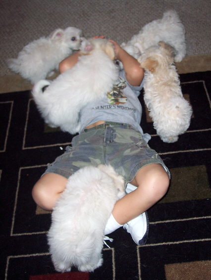 We specialize in adorable, non-shedding, well socialized, champion pedigree AKC Havanese. Our puppies are hand delivered and raised underfoot in our home. If you would like the ultimate pet and to be treated with kindness and respect you have definitely come to the right place. We do not work outside of our home and our Havanese are part of the family. Havanese are companion dogs and do not need to be left alone for more than 2/3 hours at a time. They should never be raised by breeders that work a full time job! They would be terribly depressed. We truly love this breed and have their best interests at heart. Please travel through our website to meet our adorable Havies! Our champion pedigrees lines include: Los Perritos, Petravari Longfur, A Maiden's Effort, Pillowtalk, Massive Angel, Salemi, Kantorvari, Alderons and Honor.