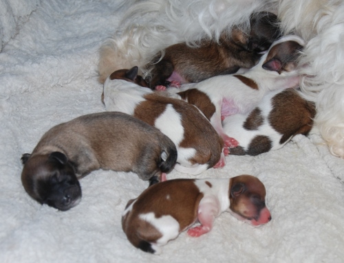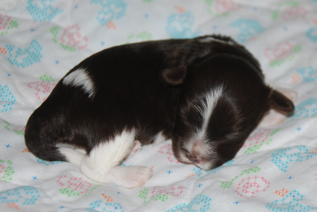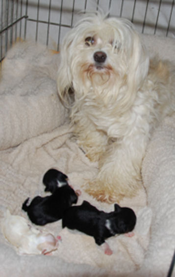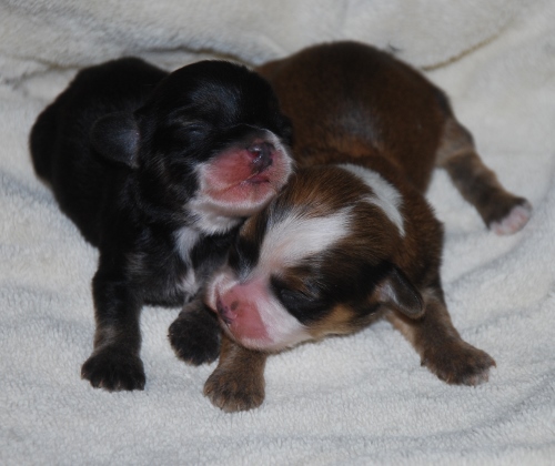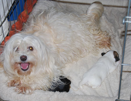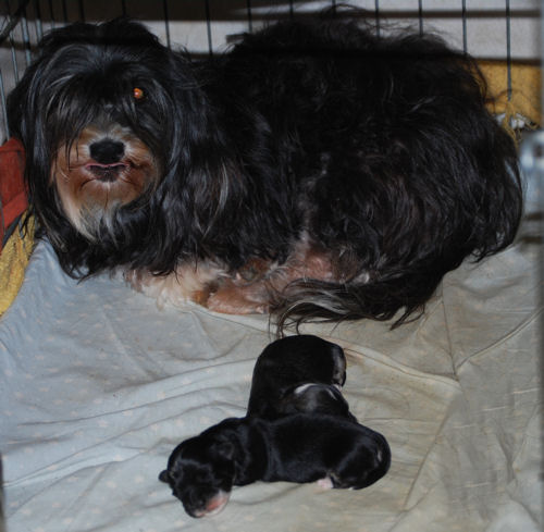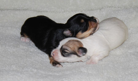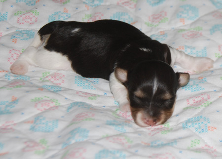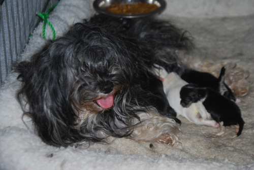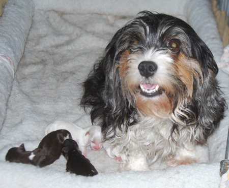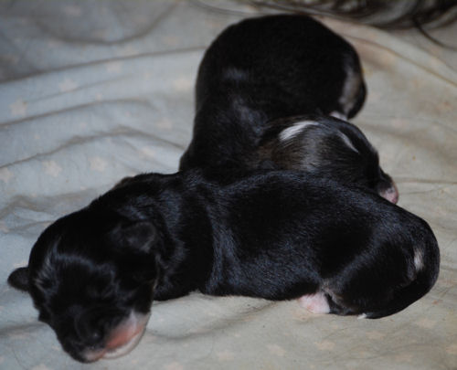 Izzie and AKC CH Honor After Six "Tux" puppies are here!