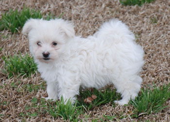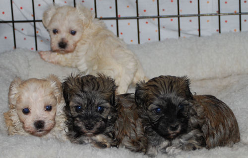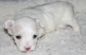 Four puppies in total: Three boys and one girl. (white)
