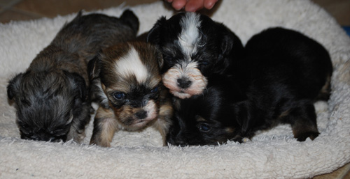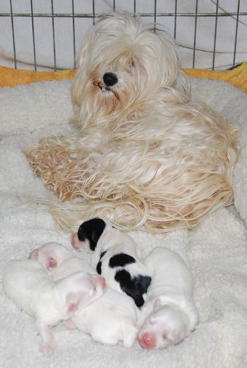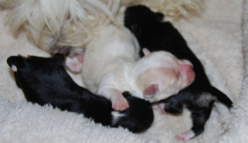 Bianca and AKC CH Tux's puppies are here! Two handsome boys and two adorable girls!