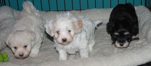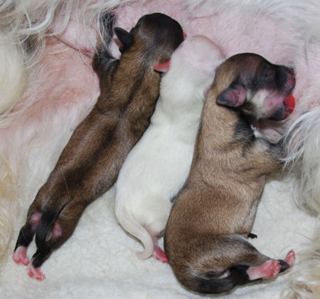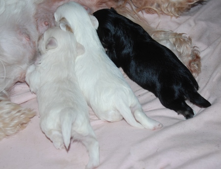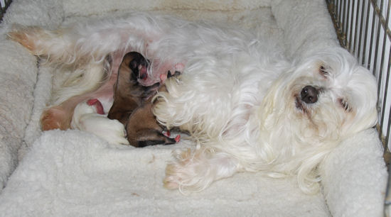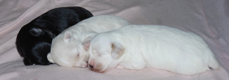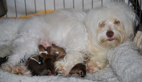 Winnie and Poncho's puppies have arrived One white female, one chocolate female and