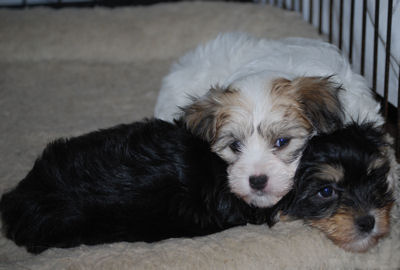 One cute black and white male and one adorable brown and white female.