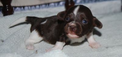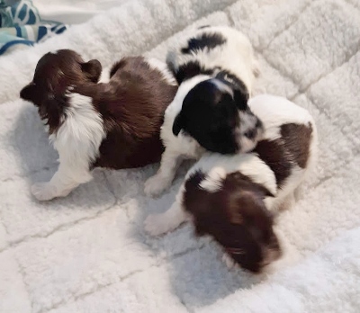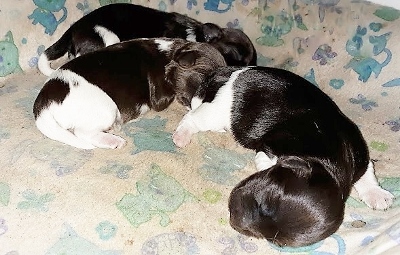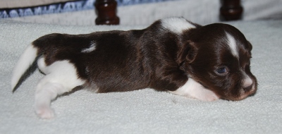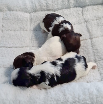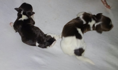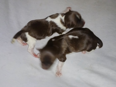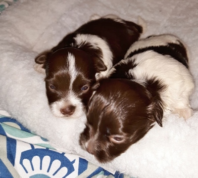 Two chocolate/white and one sable/white.