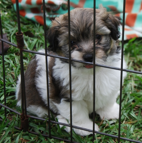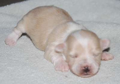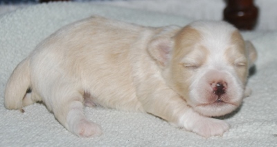 Precious cream and white female Havanese puppy. The sire is my handsome, Giorgio and