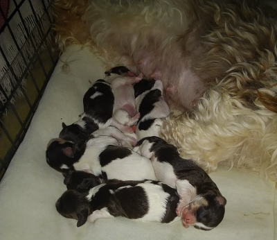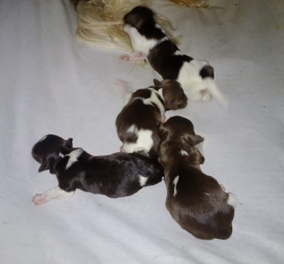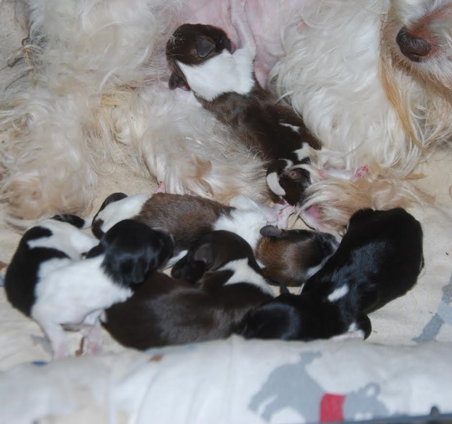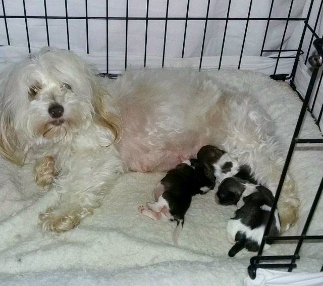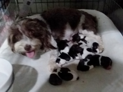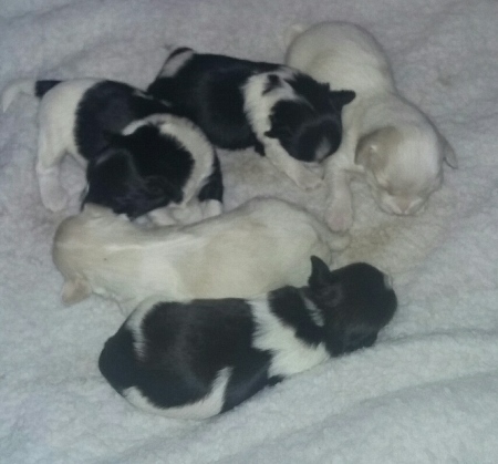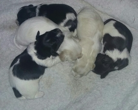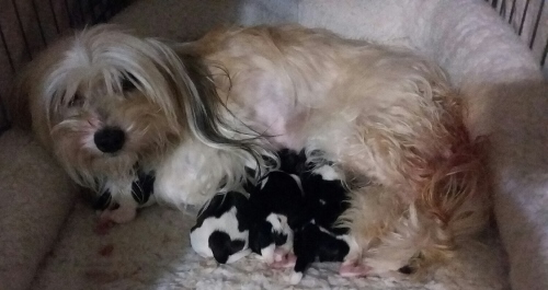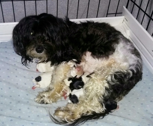Gigi and Tux's puppies have arrived! Five pups in total.