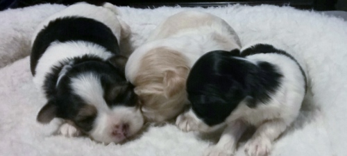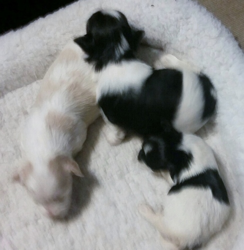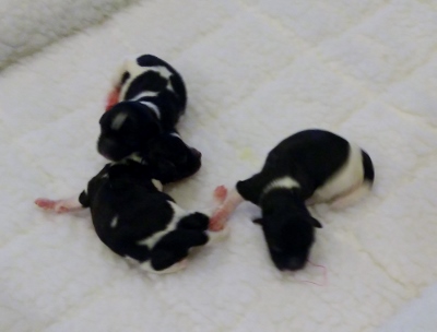 Presta and AKC Ch Tux's puppies have arrived. Three adorable girls!