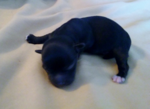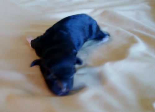 She had 2 adorable black and white males! Mom and pups are doing super!