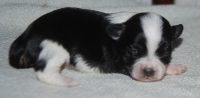 She had one black/white female (sold) and one black/white male. (sold)