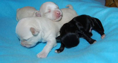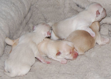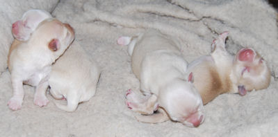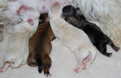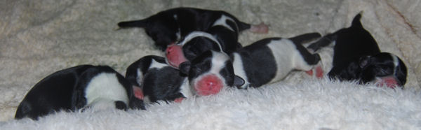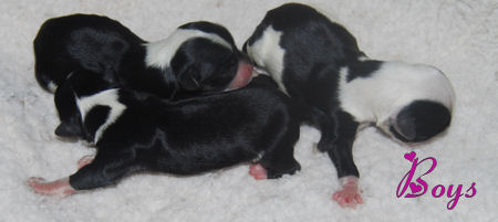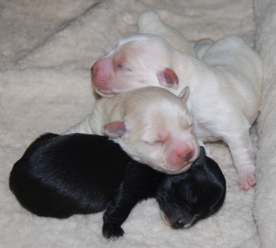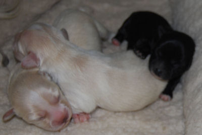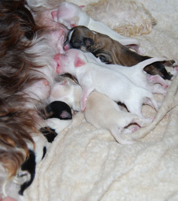 We are happy to announce the birth of Demi X Rico's puppies. Three pups in total: two cream/white males and one black/white female. Congrats: Tom, Michelle and Patricia.