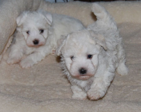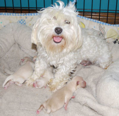 Harley and Bridget Bardot had their litter. Two adorable white male puppies!